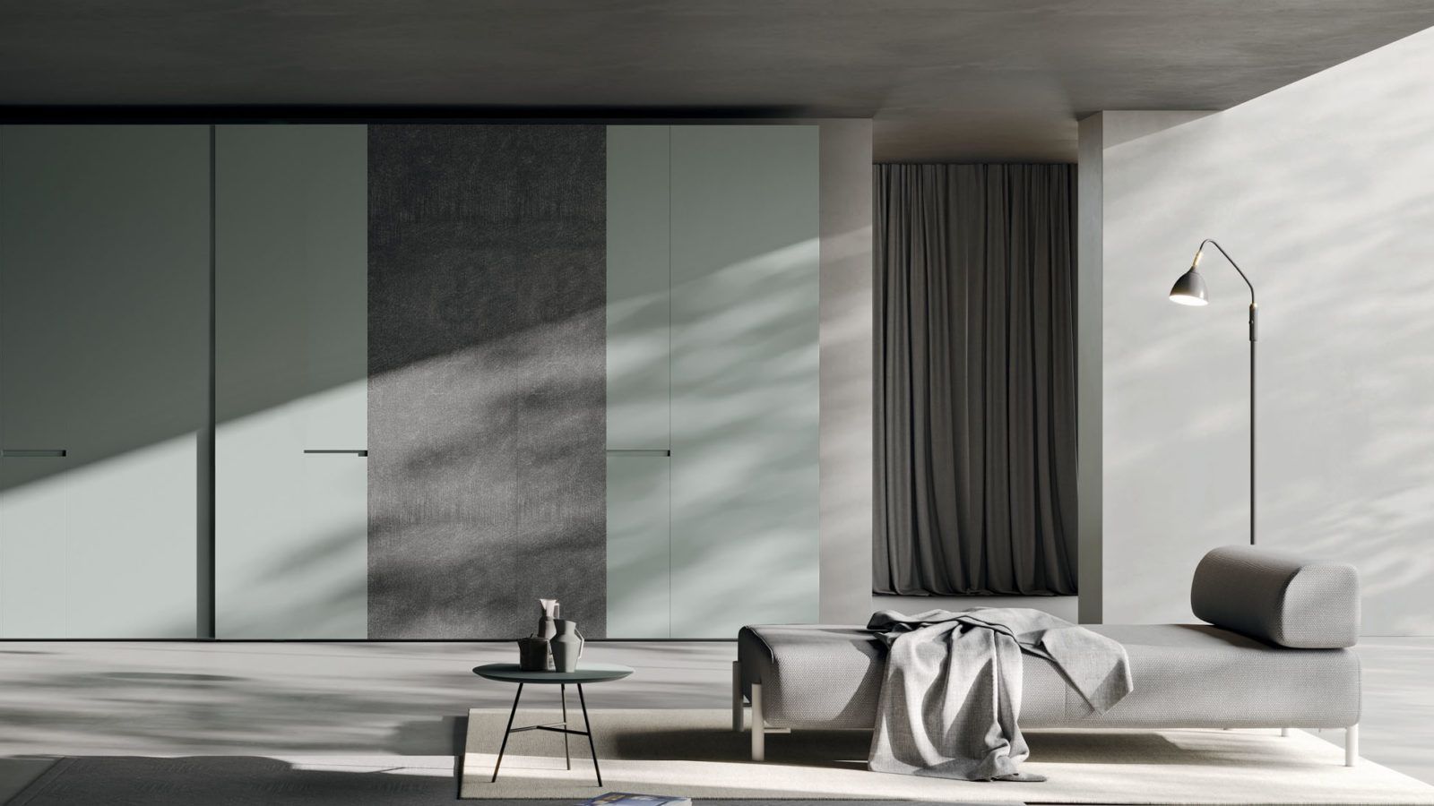 L’obiettivo è creare un sistema contenitivo che si inserisca in modo naturale nella camera, senza appesantire l’ambiente.