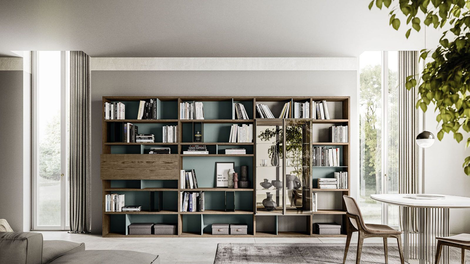 Un sistema completo per arredare e organizzare lo spazio giorno, trovando sempre una collocazione ideale per il microcosmo di libri, ricordi e oggetti che sono parte integrante della quotidianità.